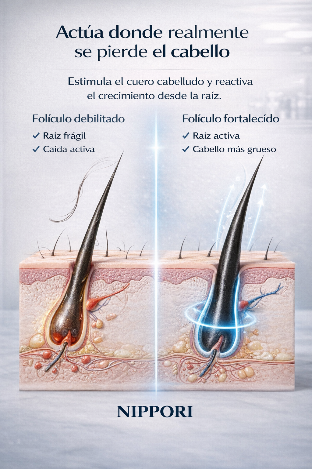 SHAMPOO CLINICO NIPPORI - Actúa desde la raíz cuando el cabello empieza a desaparecer