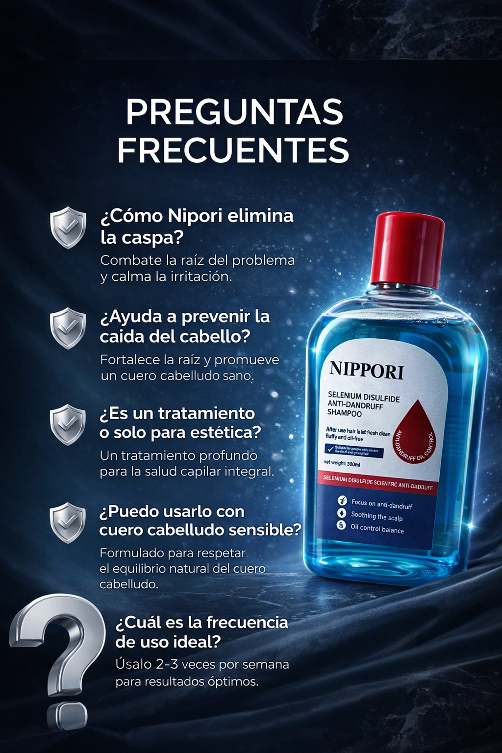 “¡Increíble efectividad! En solo 2 semanas usando Nipori Anti-Dandruff Shampoo, la caspa desapareció por completo. Mi cuero cabelludo se siente limpio y sin picazón.